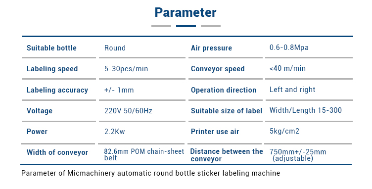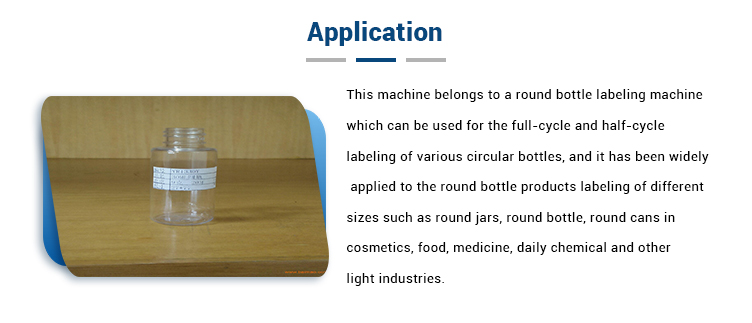 Šī mašīna pieder apaļo pudeļu marķēšanas mašīnai, kuru var izmantot dažādu apļveida pudeļu marķēšanai pilna cikla un puscikla laikā, un tā ir plaši pielietota dažādu izmēru apaļo pudeļu produktu marķēšanai, piemēram, apaļās burkās, apaļajā pudelē. , apaļas kārbas kosmētikā, pārtikā, medicīnā, ikdienas ķīmijas un citās vieglajās rūpniecībās. Iekārtu sastāvs: Elektriskais skapis, Pārnešanas mehānisms, Atsevišķa pudeles ierīce, Ritošā etiķetes ierīce, Otas etiķetes ierīce, 1 # marķēšanas motors, Darbības sistēma un vadības sistēma.